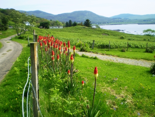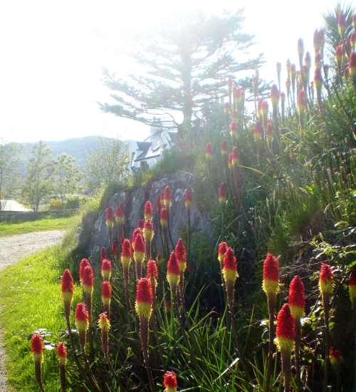 Ardnamurchan, the most westerly point of mainland Britain, is not the first place most of us would look to find the dramatic Shenandoah ‘Red Hot Poker’ or ‘Torch Lily’ in bloom; after all, the Kniphofia group of plants to which Torch Lilies belong originated in Africa. But the remote north-west UK location around Loch Sunart has been showing these spectacular flowers off in profusion during the amazingly hot (up to 24 degrees C) first weekend of June this year.