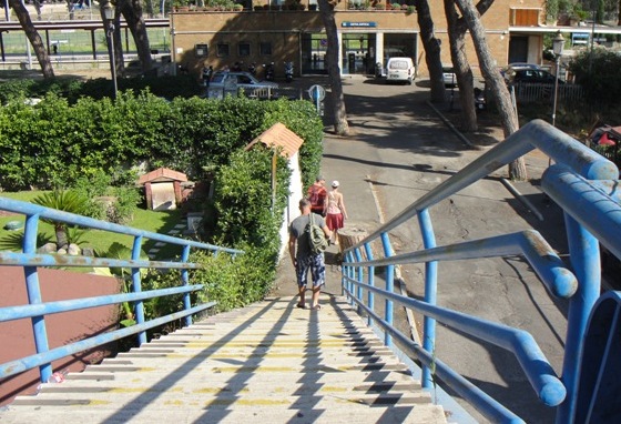 It’s easier to reach Ostia Antica by train than might be imagined. You can get the Metro (Line B Laurentina till Magliana, from Termini) to Piramide and then transfer (don’t go through the ticket barrier, just move across to the other platforms) to the Roma Lido train to C.Colombo, alighting at Ostia Antica stop. From there it’s a stroll to the actual site – the only snag being the massive steps up and down near the station, to cross the main road, which means you will need to arrive by car (map) if you have a wheelchair: