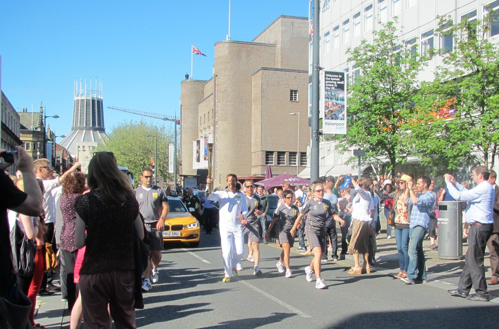 Then the torch was once more on its way, drawing together the communities of Liverpool whilst, as we have witnessed many other times, we followed the ceremonial linking of our city’s two great cathedrals.
